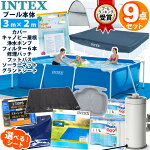 9点セット【 INTEX インテックス 】フレームプール 300 ×200×75レクタングラー カバー グランドクロス キャノピー ポンプ カートリッジ フットバス ソーラーマット リペアパッチ 家庭用 大型 プールセット プール セット 循環 循環ポンプ 夏休み 庭 子ども 子供 大人