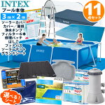 11点セット【 INTEX】インテックス フレーム プール 300 ×200×753 m 大型 レクタングラー ソーラー カバー グランドクロス キャノピー 循環 ポンプ カートリッジ ラダー フットバス ソーラーマット リペアパッチ 家庭用 プールセット プール セット レクタングラー