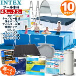11点セット【 INTEX】インテックス フレームプール 450 ×220×84cm4.5 m ソーラー カバー グランドクロス キャノピー 循環 ポンプ フィルター カートリッジ フットバス リペアパッチ 家庭用 大型 プールセット 大型 家庭用 プール ビニールプール レクタングラー