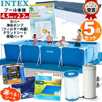 5点セット【 INTEX インテックス 】フレームプール 300 cm カバー付3 m フィルターポンプ リペアパッチ グランドクロス ブルーシート プールカバー 3m x 2m x 75 cm 家庭用 大型 子供 おもちゃ 水遊び 空気入れ不要 プールセット プール セット 循環 ポンプ 循環ポンプ