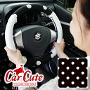 【複数商品の購入で半額】全ての軽自動車に対応【合わせ買いで半額】ハンドルカバー 水玉 ブラック & ホワイト ( カワイイ 布 × レザー ) ( 軽自動車 sサイズ ハンドル 可愛い ドット かわいい 黒 モノトーン おしゃれ オシャレ カーキュート ハスラー タント NBOX)