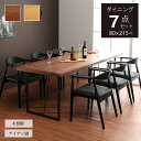 6人掛け北欧 無垢材オーク ダイニングテーブル ウォールナット アイアン脚 一枚板風 無垢材オーク ダイニングテーブル ウォールナット アイアン脚 一枚板風ダイニングテーブルセット 6人掛け 無垢 「 クリスタ ダイニング7点セット 」 80×215cm 【開梱設置対応】 ダイニング セット ダイニングテーブル セット 北欧 ウォールナット アイアン脚 一枚板風