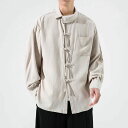 斜め襟の長袖漢服シャツ。カジュアルで一味違うチャイナシャツに仕上がっています。チャイナ服 メンズ チャイナシャツ 漢服 男性用 斜め襟 斜め開き 立ち襟 3つボタン チャイナボタン 中華風 【送料無料】