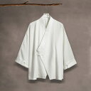 薄手綿麻の斜め襟チャイナTシャツ。伝統的漢服スタイルですがカジュアルに着こなせます。チャイナ服 チャイナTシャツ 漢服 カンフー メンズ 男性用 白袖 カフス袖 斜め襟 斜め開き 中華風 送料無料 民族衣装 綿麻