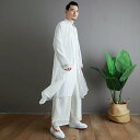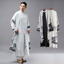 クロークコート風の漢服ジャケットとハーレムパンツのセット。綿麻生地を専門とするメーカーなので、素材感は抜群です。チャイナ服 カンフー服 中国服 漢服 民族衣装 スーツ 上下 メンズ 男性用 中華風 衣装 コスプレ 禅意茶服 【送料無料】