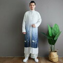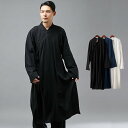 斜め開きの丈長ロングジャケット。僧道服と呼ばれる僧侶の服をカジュアルに表現したジャケットです。チャイナ服 メンズ チャイナジャケット チャンパオ 漢服 男性用 ロング 丈長 斜め襟 斜め開き 中国服 民族衣装 中華服 【送料無料】