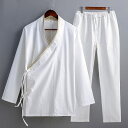 中国伝統の道服(道士の着る服)のセットアップ。カンフー・太極拳の練習服、またはホームウェアとしても着ていただけます。チャイナ服 メンズ 男性用 チャイナ服上下 上下セット 斜め襟 セットアップ 中華風 民族衣装 漢服 道服 道衣 【送料無料】
