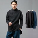 斜め襟の長袖漢服シャツ。カジュアルで一味違うチャイナシャツに仕上がっています。チャイナ服 メンズ チャイナシャツ 漢服 男性用 斜め襟 斜め開き 立ち襟 3つボタン チャイナボタン 中華風 【送料無料】