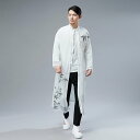 左右の衽(おくみ)を交叉させる交領の丈長ジャケット。裾回りが大きく広がるデザインも特徴です。チャイナ服 メンズ チャイナジャケット チャンパオ ロング 丈長 男性用 漢服 交領 中国服 民族衣装 中華服 【送料無料】