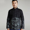 ランダムなインク柄がプリントされたチャイナジャケット。インパクトのある個性的なジャケットです。チャイナ服 メンズ チャイナジャケット カンフージャケット 男性用 唐装 中華風 立ち襟 インク柄 【送料無料】