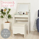 ドレッサー ナチュラル ブラウン ホワイト 化粧台 一面鏡ドレッサー&スツールセット [2口コンセント付き] ナチュラル ダークブラウン ホワイト 化粧台 メイクボックス 一面鏡 ドレッサー コンセント