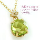 大粒7ミリの美肌ペリドットが、いつまでも見飽きないほどキレイ。チェスカットとダイヤモンドの光で毎日のコーデ、フォーマルシーンや爽やかな大人のエレガントスタイルに。ペリドット ネックレス 8月誕生石 チェスカット チェッカーカット(チェッカーボードカット) 大粒7ミリ ペンダント K10イエローゴールド レディース「ロンチェラート」 誕生日プレゼント 女性 妻 嫁 20代 30代 40代【在庫あり】