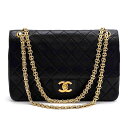 CHANEL シャネル マトラッセ 25 チェーン ダブルフラップ ココマーク ゴールド金具 ヴィンテージ ラムスキン ショルダーバッグ●レディース ブラック 黒 【中古】