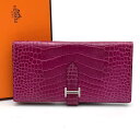 HERMES エルメス ベアンスフレ アリゲーター クロコ 財布●レディース パープル □Q【中古】