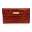 HERMES エルメス ケリーウォレット アリゲーター クロコ 長財布●レディース ライトブラウン系 □R刻印【中古】