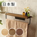 Olds アイアン タオル掛け トイレ キッチン 洗面所 壁 掛け タオルハンガー おしゃれ アンティーク 黒 木製 棚板 オーク 無垢天板 木 タオル ホルダー バー 日本製 インターワークス【日本製】Olds オーク 棚付 タオルハンガー S [アンティーク アイアン]タオル掛け トイレ 木製