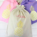 日常にハワイを感じるグッズ 刺繍 袋 巾着 パイナップルアロハ パイナップル トラベルサック 巾着ハワイアン雑貨 ハワイ雑貨 おしゃれ 刺繍 Angels by the Sea Hawaii エンジェルズバイザシー 芸能人 愛用 メディア掲載 アイボリー ピンク ナチュラル ブルー パープル イエロー ハワイ