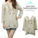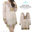 おしゃれ好きな海辺の「エンジェル」 可愛い おしゃれ リゾートリネンチュニック スターフィッシュエンブロイダリー ナチュラル XS [525NA]エンジェルズバイザシー 芸能人 セレブ 愛用 メディア掲載 可愛い おしゃれ 刺繍 麻 Angels by the Sea Hawaii ハワイ トップス 長袖