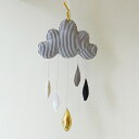 シンプル・モダンでスタイリッシュなストライプの雲と雫モチーフモビール。【公式】ウォールモビール・ニュアージュ・ストライプ【赤ちゃん 新生児 モビール 月 ムーン クモ くも 雲 ベビー 妊娠 出産準備 プレゼント ギフト 撮影小物 写真館 フォトスタジオ 子供部屋 インテリア】ファブリック 布製 コスプレ 特別