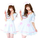 ストライプ生地に、オーガンジーの透けた紋章&エプロンが可愛いナースコスチューム。聴診器付きで充実の6点セット!【公式】【コスプレ ハロウィン ナース】 HW ブルーソーダナースストライプ 衣装 女性用 レディース コーデ カラフル パステル パーティー コスチューム 結婚式 二次会 余興 ハロウィン 出し物 歓迎会 送迎会 ダイナー ウェイトレス