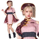 くすみピンク×ボルドーカラーの個性的でレトロガーリーなキョンシー。パイピングも色味を抑えたゴールドカラー。つや感のあるくすみカラーは肌馴染みも良く実は着こなし易い。【公式】【ハロウィン コスプレ レディース キョンシー】HW レトロナースキョンシーキョンシーガール 女性用 コスチューム コスプレ 衣装 個性的 チャイナ服 ハロウィーン パーティー 結婚式 二次会 出し物