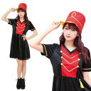 黒地に赤のさし色が大人っぽいデザイン!高さのある帽子は小顔効果あり!【公式】【ハロウィン コスプレ 応援団】TG マーチングバンド 衣装 忘年会 かわいい 可愛い おしゃれ 女性 レディース パーティー イベント コスチューム ハロウィーン 出し物 歓迎会 送迎会 トキメキグラフィティ 特別