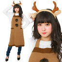 定番の形で使いやすいトナカイエプロン!ポケット付きで便利。ユニセックスだから販促やイベントにどうぞ!【公式】【コスプレ クリスマス トナカイ】トナカイエプロンセット ハロウィン サンタ サンタクロース 衣装 メンズ レディース 施設 幼稚園 保育園 忘年会 コスチューム 店舗 イベント 販促 大人用 安い