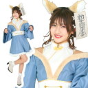 白狐、神社をイメージしたコスチューム。帯風のリボンの和柄生地と飾りが華やか。腰ひもを後ろで結ぶことでウエストの絞りを調整出来ます。【公式】コスプレ ハロウィン COSCHU! 稲荷様パーカー ■ ジュニアサイズ 男女兼用 コスチューム 衣装 仮装 コーデ ハロウィーン パーティー 出し物
