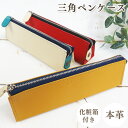 ファスナー 三角 筆箱 ふでばこ ふで箱 牛革 おしゃれ 大人 かっこいい レザーペンケース【本革×バイカラー】ペンケース 三角ペンケース ファスナーペンケース 三角形 ファスナータイプ 本革 レザー 革 メンズ レディース ギフト 化粧箱付き プレゼント ラッピング バレンタイン ホワイトデー 送料無料