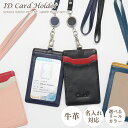 名前 刻印 選べるリールありなし IDケース IDホルダー 首掛け 名札 社員証 入館証 フィルム取替可 ストラップ紐 長さ調節 メンズ レディース カジュアル 牛革 レザー 自分用【名入れ】本革 IDカードホルダー Simple 革 ネームホルダー リールなし リール付き 横型 両面 IDケース バイカラー ビジネス ネックストラップ ギフト プレゼント ラッピング 送料無料