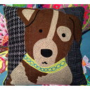 クッションカバー 中綿付き 刺繍 インテリア カラフル 動物モチーフKarma Living(カルマリビング) アニマルクッション ドッグC