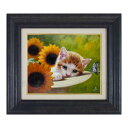新品 描き下ろし 現品限り 送料無料 額外寸41x36cm 熨斗・ラッピング無料 絵画 美術品 作品 アート タブロー 写実画 販売★ 油彩画 長岡卓 「ひなたぼっこ」 F3号 額付き 油絵 真筆 ひまわりの花 子猫 かわいい ねこ 向日葵 リアリズム 肉筆 手描き 直筆サイン 真作保証