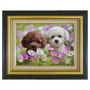 新品 描き下ろし 現品限り 額外寸47x38.5cm 送料無料 熨斗・ラッピング無料 絵画 美術品 作品 アート タブロー ドッグアート 販売油彩画 長岡卓 「なかよし(トイプードル)お花のなかで...」 F4号 額付き 油絵 真筆 リアリズム 肉筆 手描き 直筆サイン かわいい 小型犬 子犬 仔犬 パピー Puppy 写実画 真作保証