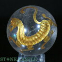 ☆一点物☆【彫刻置物】丸玉 レインボー水晶 青龍 (金彫り) 約50mm No.22【パワーストーン 天然石 アクセサリー レディース メンズ】