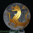 ☆一点物☆【彫刻置物】丸玉 レインボー水晶 青龍 (金彫り) 約50mm No.23【パワーストーン 天然石 アクセサリー レディース メンズ】