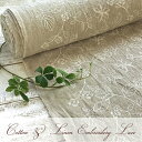 刺繍 エンブロイダリーレース 綿 麻 コットン リネン エンブレース 国産 日本産 | 布 生地 刺繍 刺しゅう スペック糸 むら染め糸 レース 花 フラワー 植物 ボタニカル 115cm幅 切り売り 10cm単位