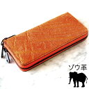 【摩擦に強く耐久性に優れたゾウ革の長財布登場!】【内革には姫路レザー使用】ZOO(ズー) 財布 長財布 象革 ラウンドファスナー オレンジ オセロットウォレット2 [Z-ZLW-069-OR] 革 本革 ゾウ革 ロングウォレット 姫路レザー エキゾチックレザー オールレザー ベージュ メンズ レディース ユニセックス 大容量 Dリング付き 日本製 春財布 人と被らない