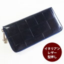 【型押しブロック模様がシックで大人可愛い長財布】【通帳も入ります】ZOO(ズー) 財布 長財布 イタリアンレザー ブロックチェック ラウンドファスナー ネイビー カラカルウォレット[Z-ZLW-079-NV] 革 牛革 本革 ロングウォレット かわいい おしゃれ 市松模様 紺 紺色 黒 レディース メンズ ユニセックス 大容量 通帳が入る 日本製 国産 春財布