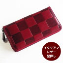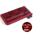 【型押しブロック模様がシックで大人可愛い長財布】【通帳も入ります】ZOO(ズー) 財布 長財布 イタリアンレザー ブロックチェック ラウンドファスナー レッド カラカルウォレット[Z-ZLW-079-RD] 革 牛革 本革 ロングウォレット かわいい おしゃれ 市松模様 赤 赤色 赤い レディース メンズ ユニセックス 大容量 通帳が入る 日本製 国産 春財布