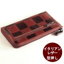 【通帳も入るスリムで大容量のL字ファスナー長財布】【個性が光る型押しブロックチェック柄】ZOO(ズー) 財布 長財布 イタリアンレザー ブロックチェック L字ファスナー レッド チーターウォレット3 [Z-ZLW-080-RD] 革 牛革 本革 ロングウォレット 薄い 薄型 スリム 赤 赤い レディース メンズ ユニセックス 大容量 通帳が入る 小銭入れ 外側 L字 日本製 国産 春財布