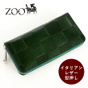 【型押しブロック模様がシックで大人可愛い長財布】【通帳も入ります】ZOO(ズー) 財布 長財布 イタリアンレザー ブロックチェック ラウンドファスナー グリーン カラカルウォレット[Z-ZLW-079-GR] 革 牛革 本革 ロングウォレット かわいい おしゃれ 市松模様 緑 深緑 緑色 レディース メンズ ユニセックス 大容量 通帳が入る 日本製 国産 春財布