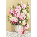 \ 説明書付き / 2色のシャクヤクを描いたクロスステッチ作品。幾重にも重なる薄い花びらやレースのクロスも繊細に表現されています Pink Peonies <中級者向け>輸入 クロスステッチキット | 刺繍キット Golden Fleece 社 ピンクピオニス | 刺しゅう 刺繍 ステッチ ししゅう 手芸 キット 手芸キット 手作り ハンドメイド 手芸用品 インテリア 世界 クロスステッチ 花 シャクヤク