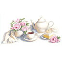 \ 説明書付き / 白いティーセットにピンクのバラが際立つ、清楚なクロスステッチ作品<中級者向け>輸入 クロスステッチキット | 刺繍キット Charivna 社 White set ( ホワイトセット )| 刺しゅう 刺繍 ししゅう 刺繍 キット 手芸 キット 手芸キット 手作り ハンドメイド 用品 インテリア 世界 クロスステッチ 花 薔薇