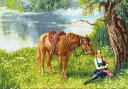 \ 説明書付き / 馬と一緒に出掛ける、楽しい夏のひとときを描いたクロスステッチ作品です<上級者向け>輸入 クロスステッチキット | 刺繍キット golden fleece社 サマーデライト | 刺しゅう 刺繍 ステッチ ししゅう 刺繍 キット 手芸 キット 手作り ハンドメイド インテリア おしゃれ 世界 クロスステッチ 馬 風景 動物