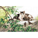 \ 説明書付き / 木々が芽吹き、ネコや小鳥たちも気持ち良さそうに春の訪れを喜んでいるようなクロスステッチ作品<上級者向け>輸入 クロスステッチキット | 刺繍キット Charivna社 春の訪れ | 刺しゅう 刺繍 ステッチ ししゅう 手芸 キット 手芸キット 手作り ハンドメイド 手芸用品 インテリア おしゃれ 世界 クロスステッチ 猫 キャット