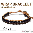メンズにもレディースにも!サイズ調整可能!ラップブレスレットシンプルな一重タイプで重ね着けにピッタリ!ラップブレスレット 本革 オニキス 天然石 パワーストーン レザー メンズ レディース ネイティブ バングル 芸能人愛用 チャンルータイプ 一重 ペア プレゼント ギフト対応