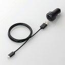 | 【ELECOM】USB Type-Cケーブルが付属。おまかせ充電に対応したUSBポートを2ポート搭載し、合計最大3.4A出力でスマートフォンの2台同時充電が可能な車載充電器。エレコム 車載充電器(3.4A・2ポート・Type C付属) ブラック [MPA-CCU09BK] 【送料別】 12V 24V トラック対応 シガーチャージャー カーチャージャー シガーソケット USB充電 スマホ充電器 車用