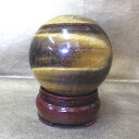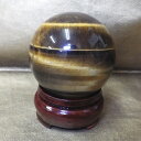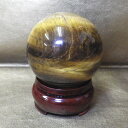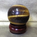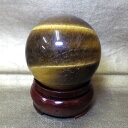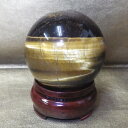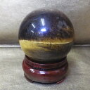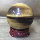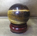 【仕事運・能力運・金運の定番パワーストーン 受験や資格試験にもお勧め強力波動】【最高品質】 ブラジル産 タイガーアイ球(虎目石・虎眼石)重さ167g 直径約49mm 完全天然石(木製台座付)★写真現品をお届け