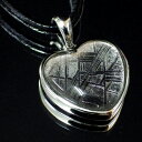【総合運・人生のレベルアップ】隕石のもつ強力波動で、チャクラに信号を送り続けよ【ハート型】ギベオン隕石メテオライトペンダント(横幅21mm たて21mm 厚さ8mm 重さ7g シルバー 完全天然ギベオン使用)茶色本革製ネックレス付