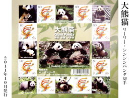 日本に来る前、中国に居た頃のリーリー・シンシンの写真を使用した記念切手シートです。【中国切手】リーリー・シンシンのパンダ切手